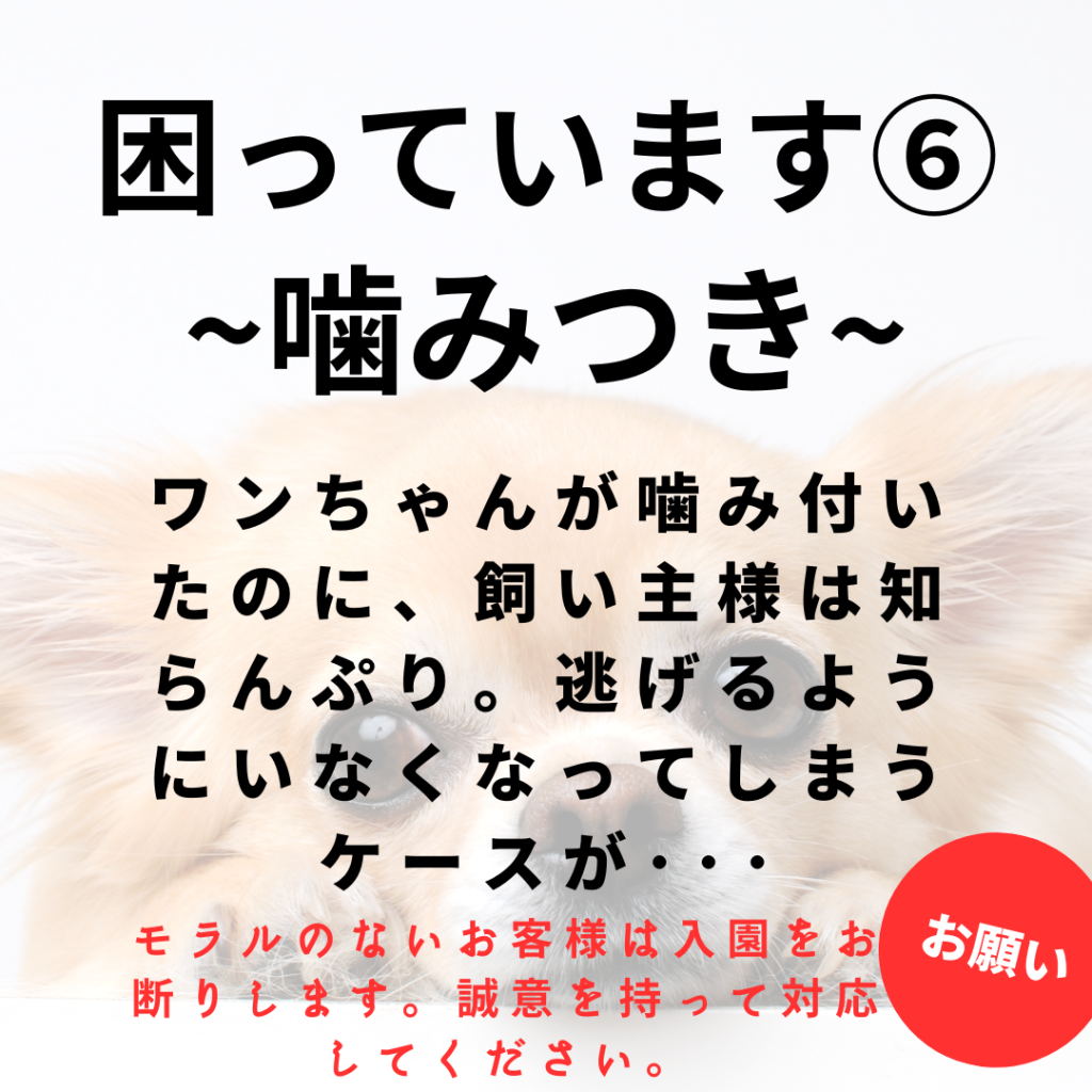 今後、状況が改善されない場合は、巡回の強化や入園ルールの抜本的な見直し(ペット入園料の設定など)を検討せざるを得ない段階に来ております。