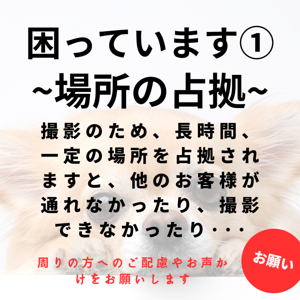 しかし現在、一部の方による「撮影するための長時間占拠」や「排泄物の放置」について、一般のお客様から大変厳しいご意見をいただいております。