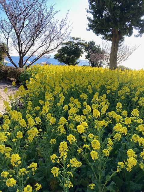 今一番のおすすめは、青い海を背景に咲く、黄色のナノハナ。