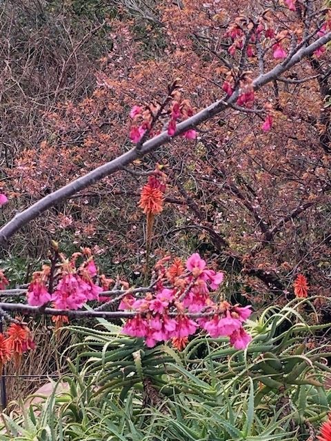 寒桜は見頃を過ぎましたが、寒緋桜はあざやかです。